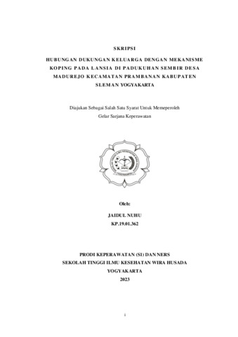 Tujuan penelitian: Mengetahui Hubungan Dukungan Keluarga Dengan Mekanisme Koping Pada Lansia. di Padukuhan Sembir Desa Madurejo Kecamatan Prambanan Kabupaten Sleman Yogyakarta.