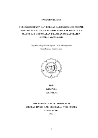 Kesimpulan: Ada hubungan yang signifikan antara dukungan keluarga dengan mekanisme koping pada lansia di padukuhan sembir desa madurejo kecamatan prambanan kabupaten sleman yogyakarta.