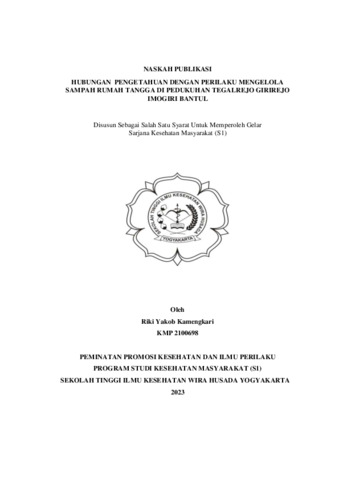 Tujuan penelitian : Untuk mengetahui hubungan pengetahuan dengan perilaku mengelola sampah rumah tangga di Pedukuhan Tegalrejo Girirejo Imogiri Bantul