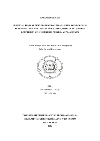 INA, IRMAWATI MUID (2024) HUBUNGAN TINGKAT PENGETAHUAN DAN SIKAP LANSIA DENGAN UPAYA PENGENDALIAN HIPERTENSI DI PADUKUHAN JOBOHAN KELURAHAN BOKOHARJO WILAYAH KERJA PUSKESMAS PRAMBANAN. Skripsi thesis, SEKOLAH TINGGI ILMU KESEHATAN WIRA HUSADA.