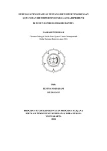 | Uncontrolled Keywords: | pengetahuan tentang diet hipertensi, kepatuhan diet hipertensi, lansia hipertensi. |